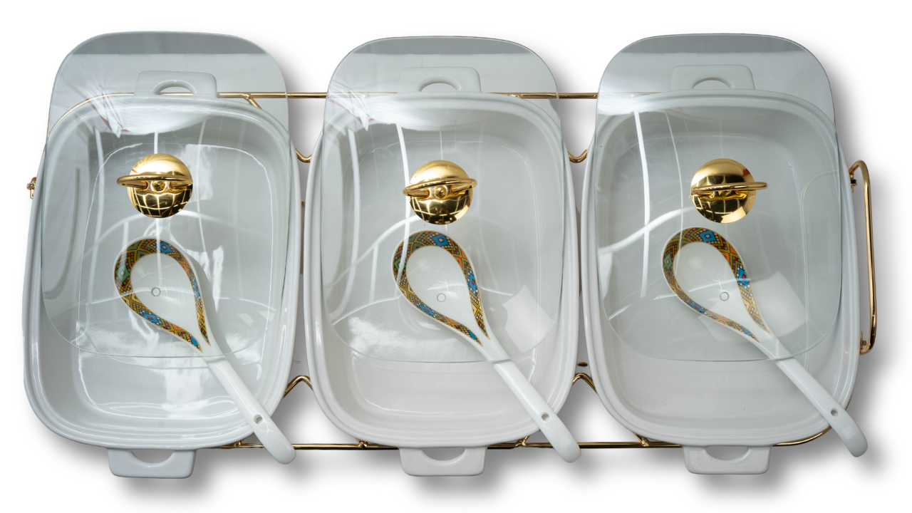 Förbättra din matupplevelse med den ovala matvärmaren, som håller din mat varm och gör om att serveras. Med en generös kapacitet på 3,0 liter är denna värmare idealisk för större sammankomster, familjemiddagar eller speciella tillfällen. Den eleganta ovala formen kompletterar med en matchande sked för bekväm servering, vilket gör den lämplig för traditionella etiopiska rätter såväl som en mängd andra kök.
