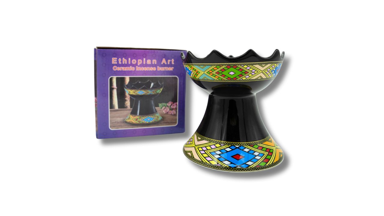 Material: Tillverkad av värmebeständiga, slitstarka material som säkerställer säker och effektiv förbränning av olika rökelsetyper, inklusive frankincense, myrra och traditionella etiopiska hartser.